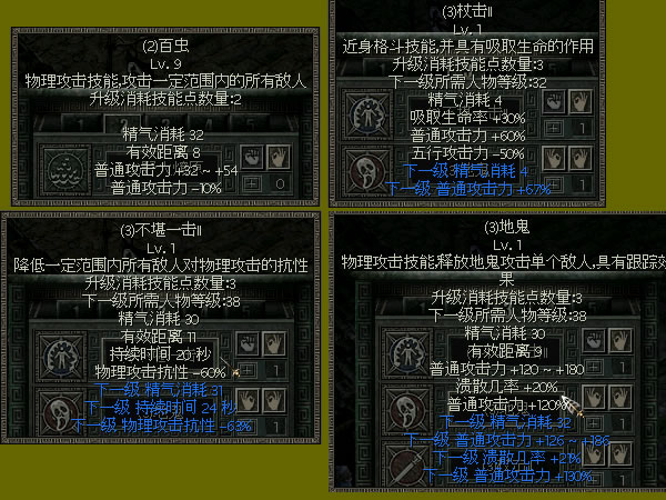 1、百虫(2) 这是2级技能,但三阶中没有普攻的群杀技能,所以,还是只能使用百虫,希望4~5级能开放其它的普攻群杀技能 :( 还有一点,很多人都说百虫9级是-20%普攻,但我却是-10%,可能我9级练的比较早,后面进行了一次技能调整